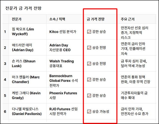 전문가들의 분석과 금 전망