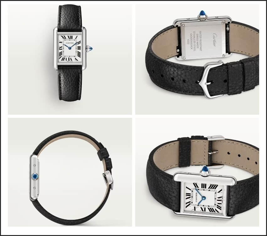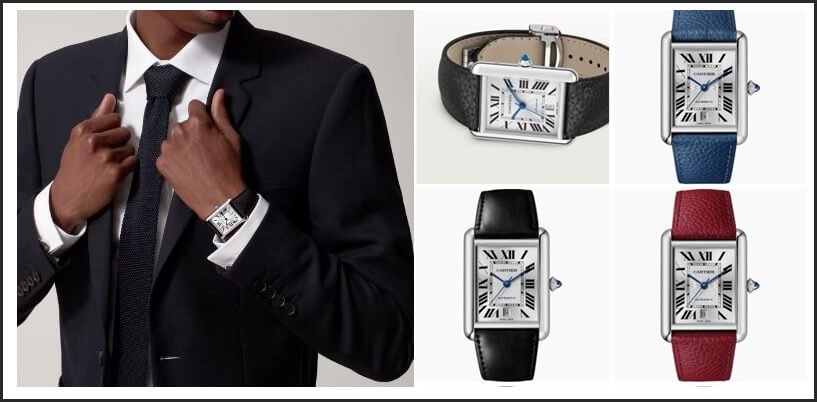 - 까르띠에 탱크 여자, 주로 여성용으로 선호도가 높으며 가죽밴드는 여러가지 색상이 있습니다.