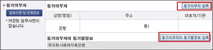 - 채권자(근저당권자)인 은행등의 등기정보를 입력