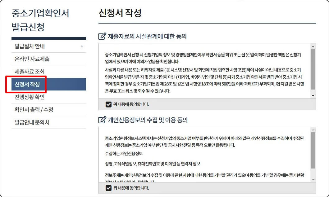 소상공인 확인서[중소기업확인서]를 먼저 발급을 먼저 받아야 합니다.