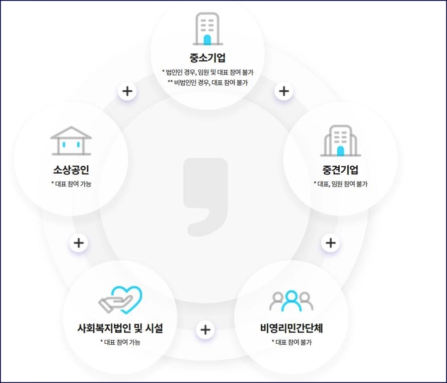 중소기업/소상공인: 중소기업확인서, 사업자등록증 각 1부씩만 있으면 됩니다. 소상공인은 소상공인확인서 발급 받으시면 됩니다.  소상공인확인서 발급은 소상공인진흥공단에서 발급이 가능합니다. 바로가기 링크 남겨놓을게요