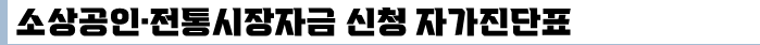 소상공인 전통 시장자금 직접 대출 2회 차 신청 준비 중이신 사장님들은 아래 자가진단표 확인하시고 미리 준비하세요.