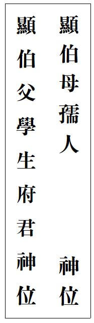 · 왼쪽 아버님(남자) - "현고 학생 부군 신위"
