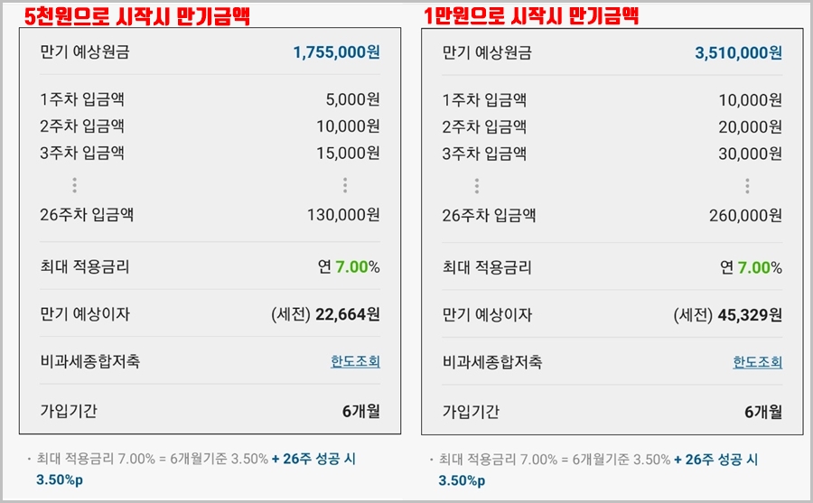· 가입방식 : 26주 동안 매주 최초 가입금액만큼 자동으로 증액하여 자동이체