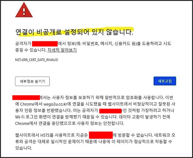 구글에서 '연결이 비공개로 설정되어 있지 않습니다" 라는 내용이 뜹니다.